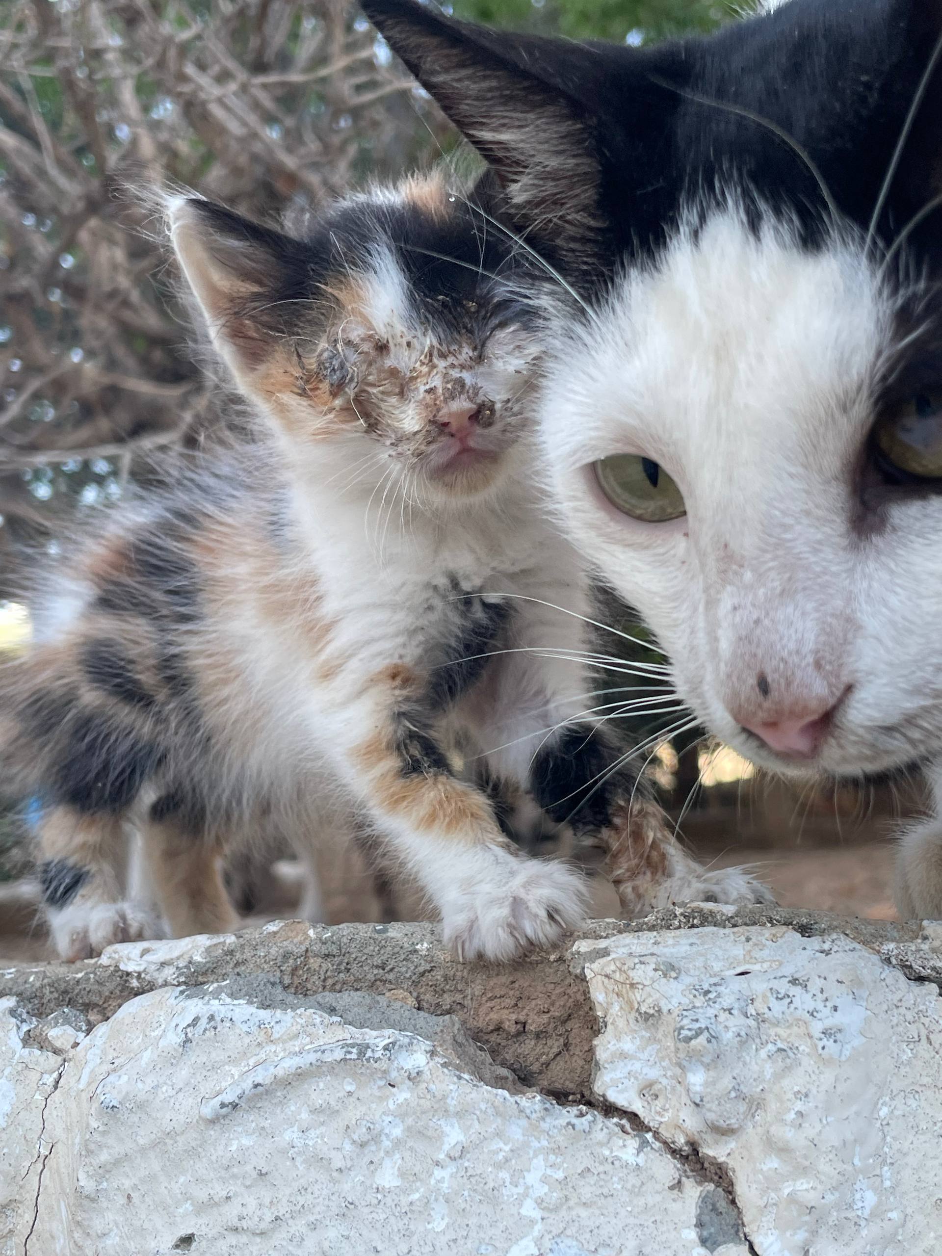 Добрый день. Три уличных котенка у которых вот такая история с глазами. Подошел сейчас сосед и рассказал. Видимо было 4штуки, но одного нашли в бассейне. Кошка мать есть.