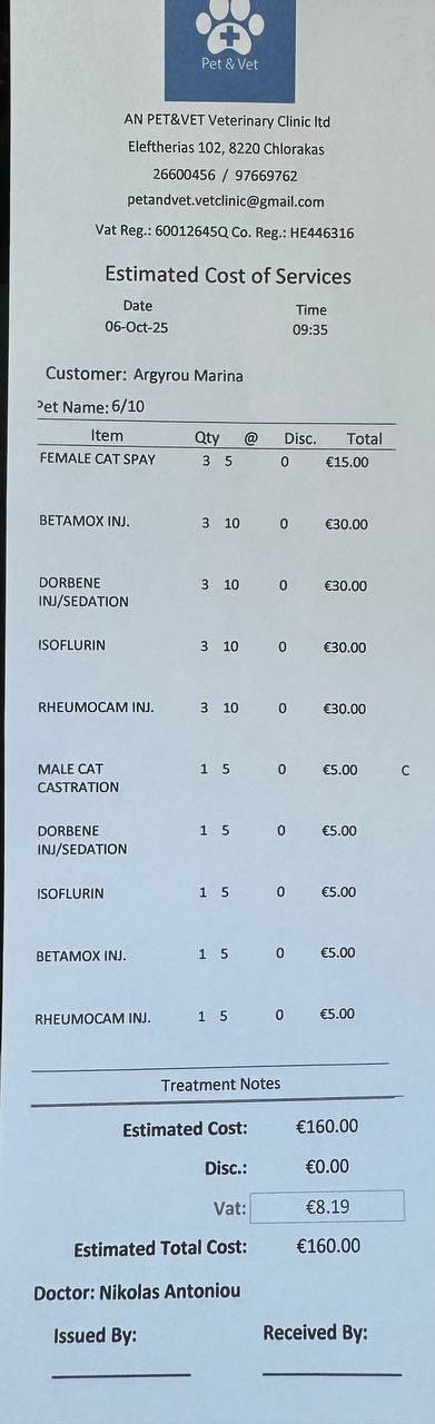Я буду очень признательна за вашу помощь. Мне ещё нужно оплатить счета за стерилизацию, осталось 200 евро.