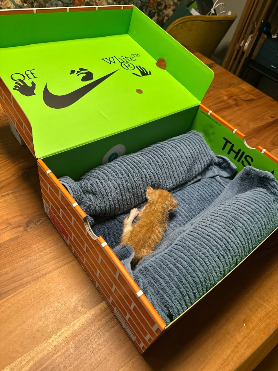 По итогу принес коробку больше, и две новые бутылки с теплой водой. Бутылки засунул в рукава, получилась подстилка посередине коробки и по краям две бутылки. Из пледа, сложенного вдвое, сделал крышу. Они как отогрелись, начали ползать везде как не в себя и орать. Ищут мамку как мамонтёнок. К людям на руки ломятся. Я перед уходом отломал и отогнул вниз бортик коробки чтобы они обратно смогли заползти как по трапу, так как очень активно вылезают. Время полночь, орут до сих пор. Надо мутить им в аптеке пипетку а лучше маленькую клизму, чтобы заместо сиськи была и они ее сосать могли. Я в детстве так делал, работало норм. Из шприца их не покормить.
