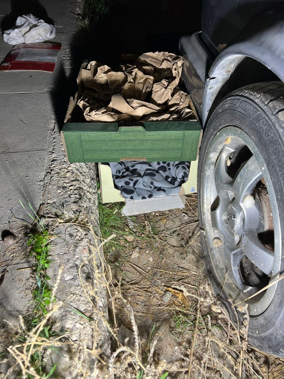 Тут я понял, что надо действовать по плану, потому что не понятно, что это за меховой пассажир и какие у него намерения, а котятам нужна крыша на ночь и грев в виде бутылок в любом случае. Пришлось их потревожить и разбудить, чтобы вытащить подстилку и обустроить там всё как следует. Вежливо постучался, мол, вечер в хату, часик в радость. Вынул их из коробки, положил бутылки, плед, их сверху, потом накрыл крышей. Вход сбоку достаточен для того, чтобы туда залезла кошка, даже такая крупная, как эта. Она всё это время сидела метрах в 10 и смотрела. Я взял прожектор и ушел, имея планы вернуться через полчаса-час и посмотреть, что произойдет с ними. Поначалу я подумал что это 100% левая любопытная кошка, потому что черная, а соседка сказала что мамка белая была. Но потом вспомнил, что киприоты иногда путают слова на противоположные, типа вместо лево говорят право. И есть шанс что соседка попутала белое с черным. В общем, мы планируем продолжать репортаж с места событий, оставайтесь с нами.