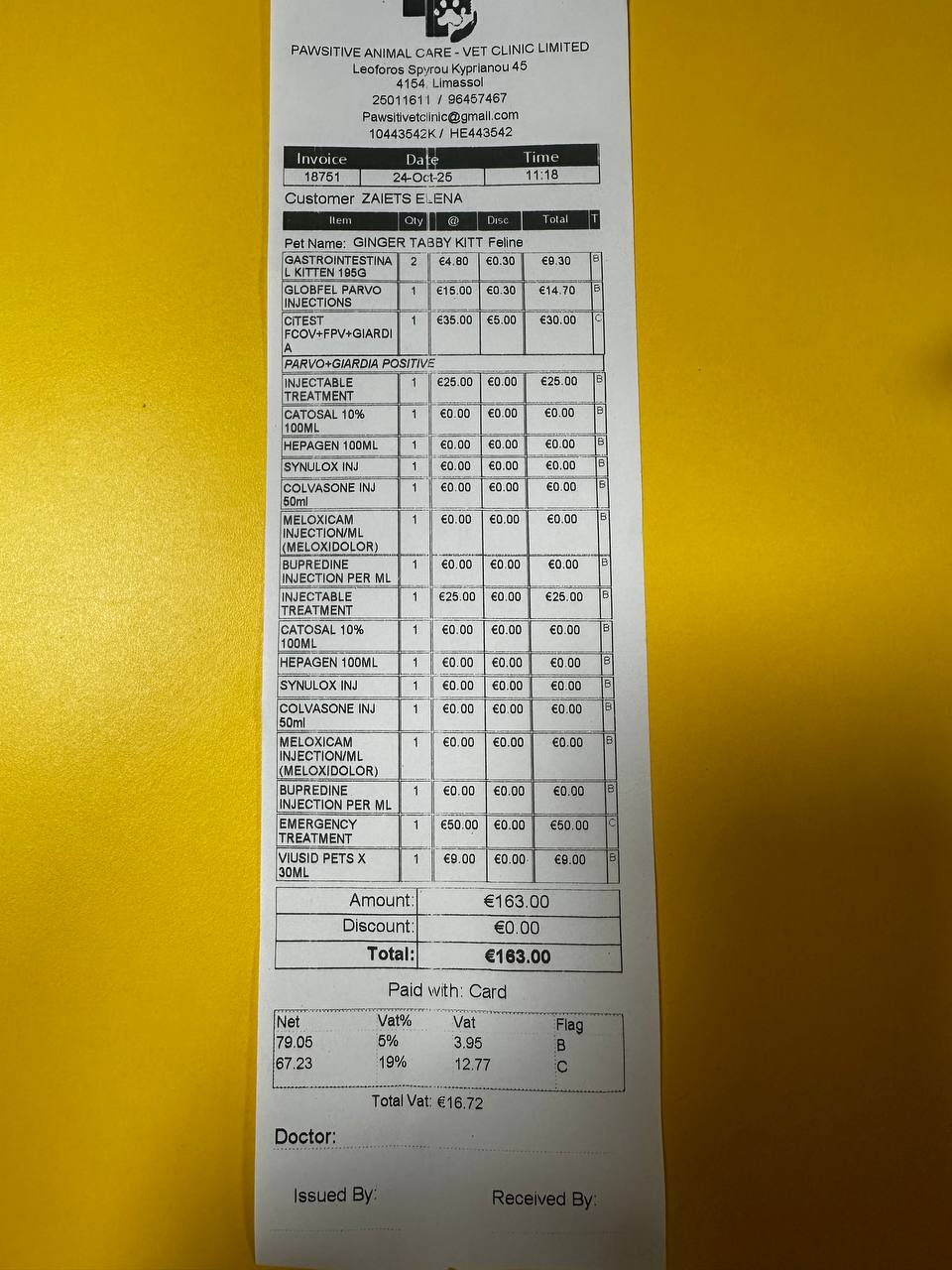 Сегодня была у врача и оплатила 3дня лечения — сумма составила 163 евро.