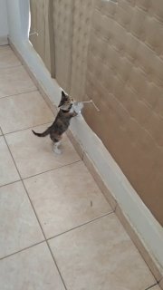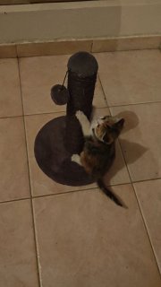 Не, ну ладно бы они приставали ко мне когда голодные. Но только что покормил их, а они так же ко мне бегут и в мои ноги вцепляются. Видимо им это просто по кайфу. Трехцветная в очередной раз доказала что самая умная. Она первая начала есть паштет, ходить в лоток, вылизываться, пить воду, а теперь еще и когтеточку юзать.
