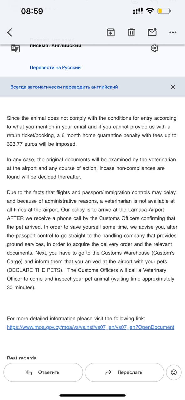 Всем привет. Подскажите если я улетаю с Кипра с кошкой мне нужно отмечаться в аэропорту и в district veterinary office? Есть паспорт с прививками и бкк как дет check перед вылетом?