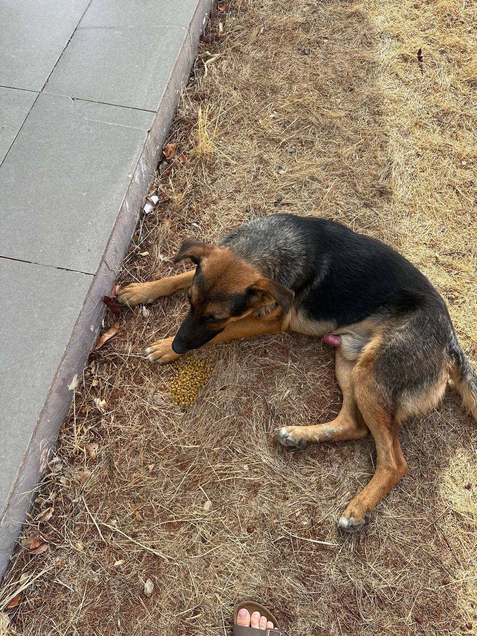 Пришла собака во двор, мальчик. Второй день не уходит.