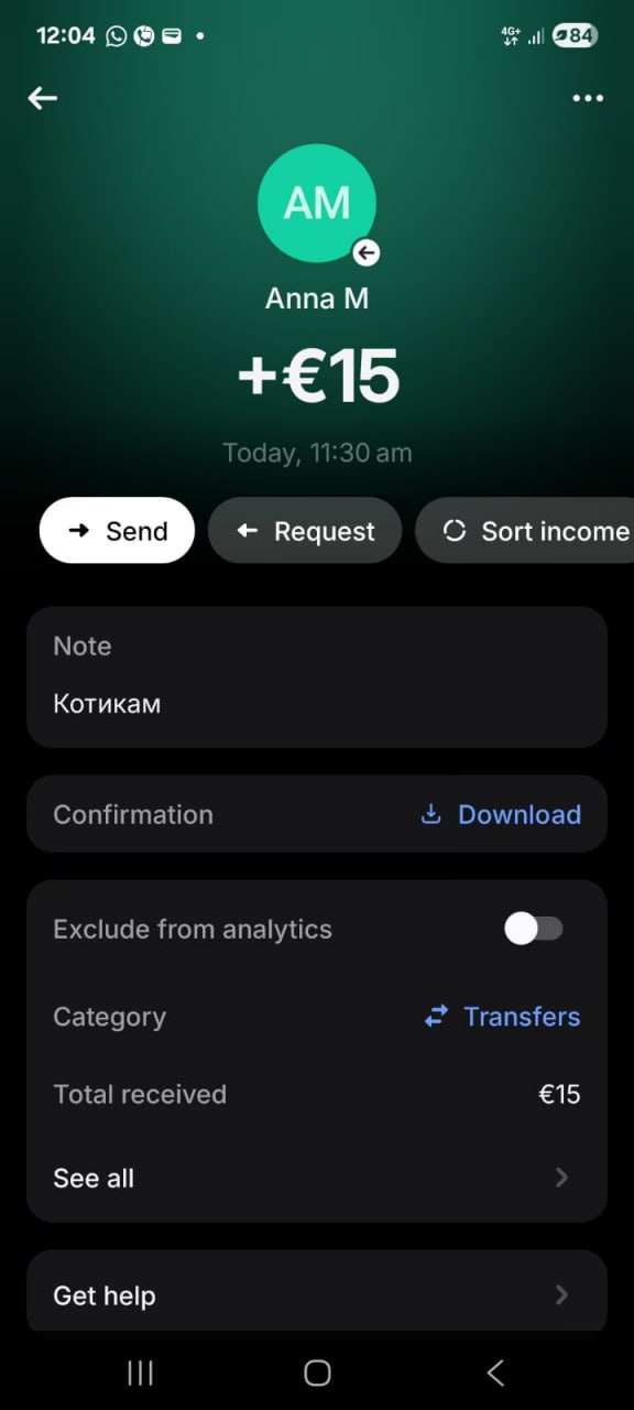 Получили 15+20+4,88 = 39.88 евро от Анны, Екатерины, Дениса! Ну что за котики, а? 🐈🐈🐈