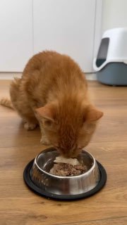 1 - как Рыжик ел в начале лечения: несмотря на то, что в тарелке тунец, его приходится несколько минут уговаривать, потом он осторожно пробует, ест через боль, в какой-то момент больно становится так сильно, что Рыжик отскакивает от тарелки и убегает (боль в этот момент максимальная: это видно по мимике, усам…)