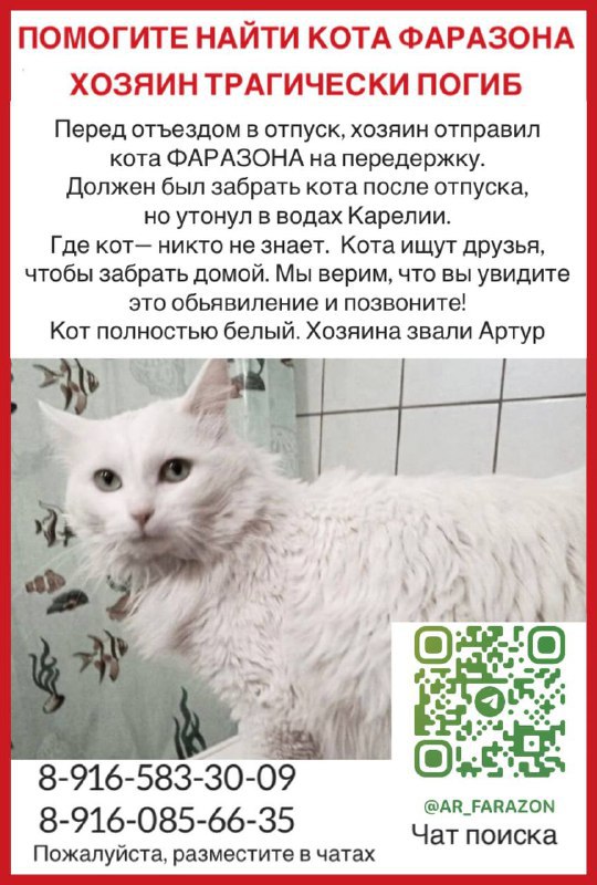 Если ваши знакомые или знакомые знакомых занимаются передержками котиков, пожалуйста, спросите нет ли у них кота