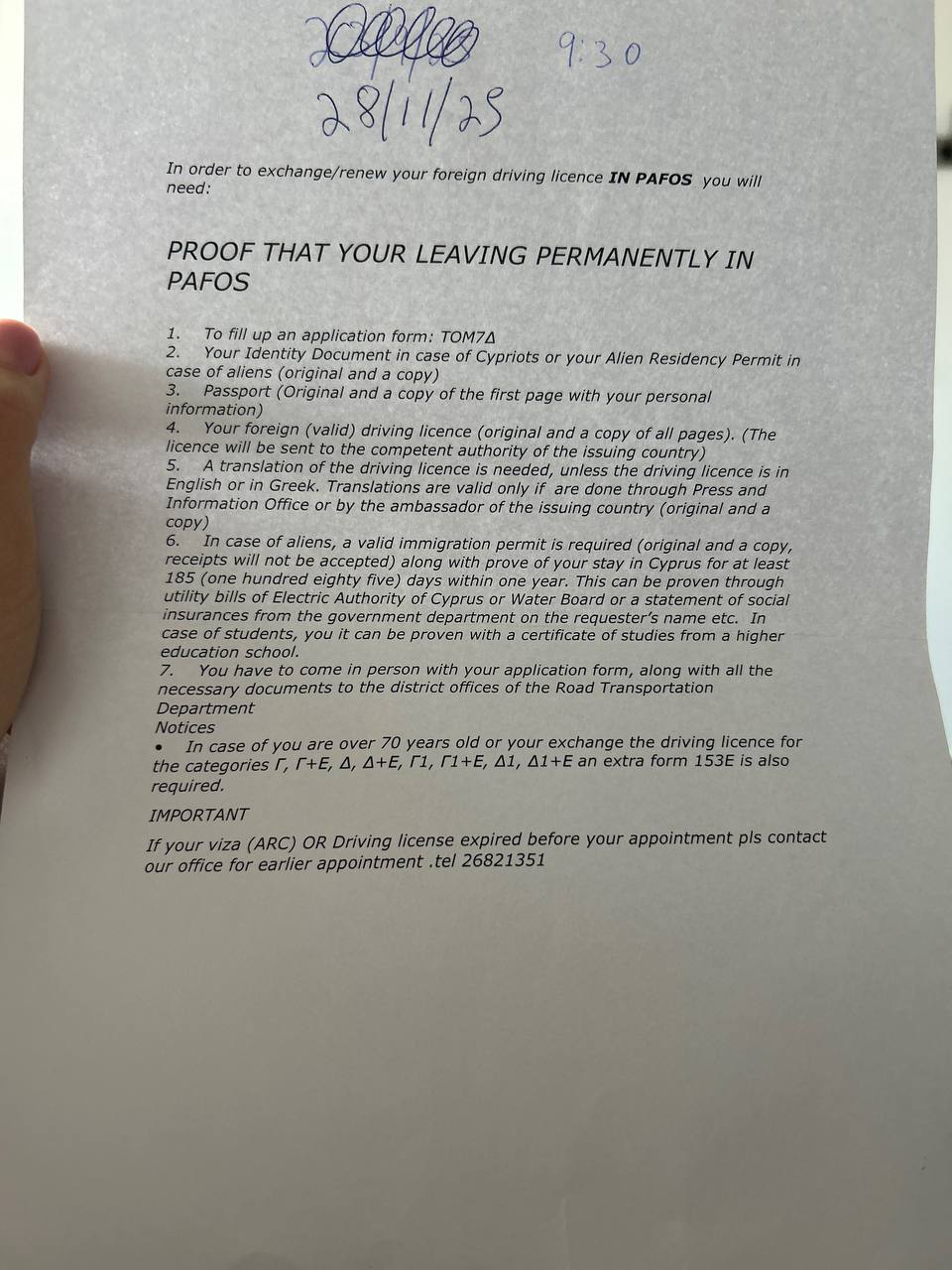 Подскажите пожалуйста, где можно узнать порядок действий для замены водительского удостоверения в Пафосе (российское на кипрское). Или ехать в road department и там узнавать?