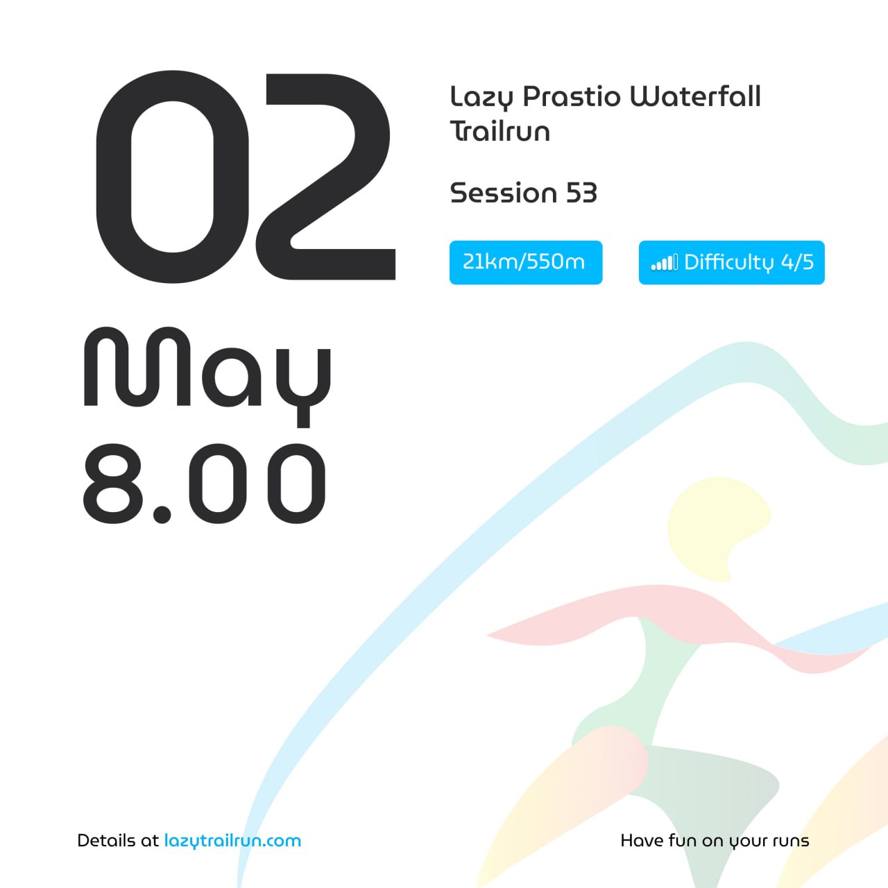 1. В субботу бежим широкий, видовой, не сильно горный трейл вокруг водопада Прастио - по картинкам не отличить от водопада Виктория, но это только по картинкам. Полумарафон в длину и наши дефолтные 500-600 метров в высоту. И десять (10!) футболок к вручению.