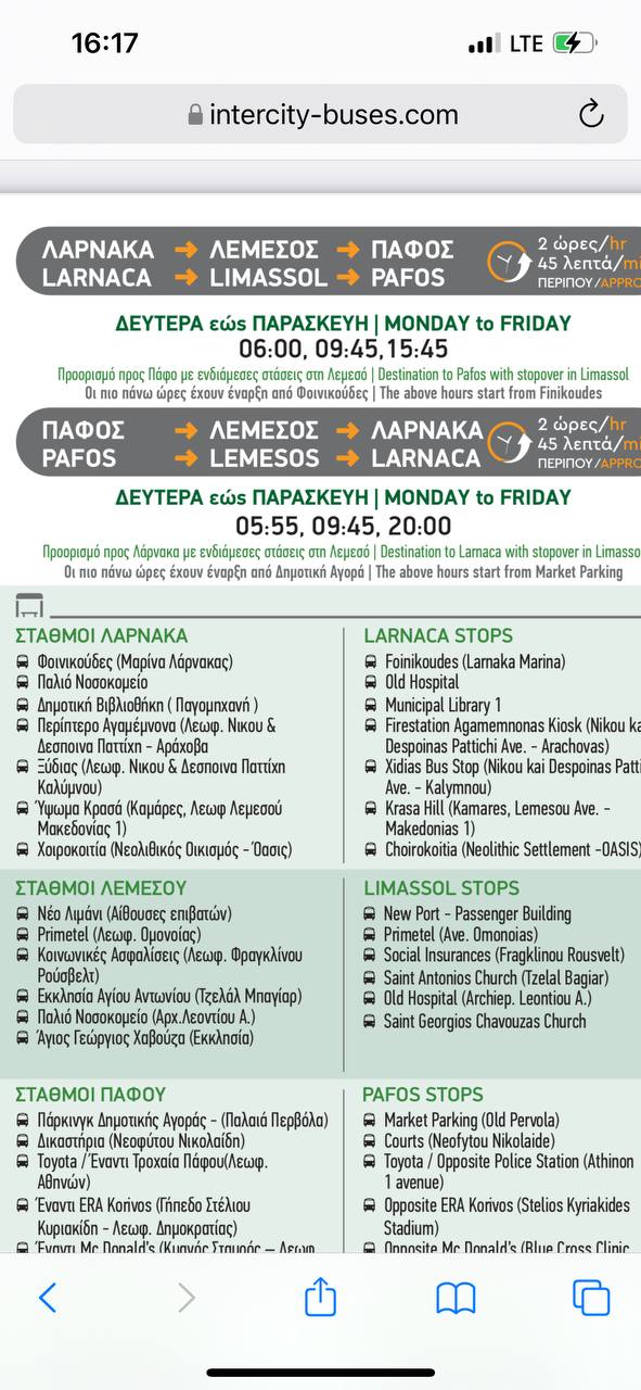 Смотря откуда и куда. Из Пафоса в Ларнаку только по будням.
