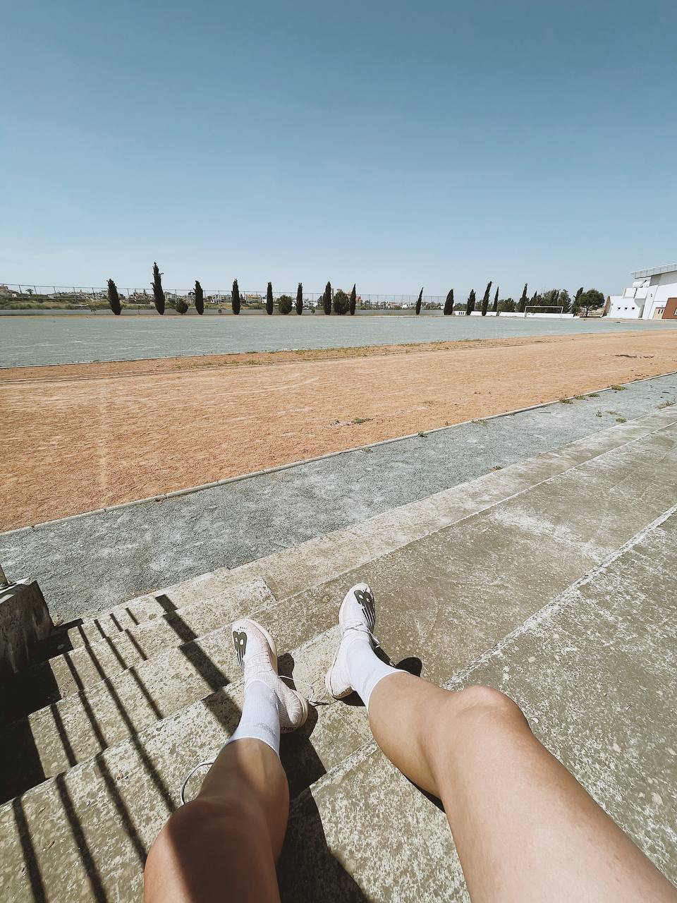 Нашёл классный стадион у себя в Лакатамии (Никосия). Гравийный. На территории какой-то средней школы. Правда потом понял, что длина круга метров 300-350, а не стандартные 400. Но рядом вроде есть стандартный стадик. Туда в следующий раз наведаюсь.