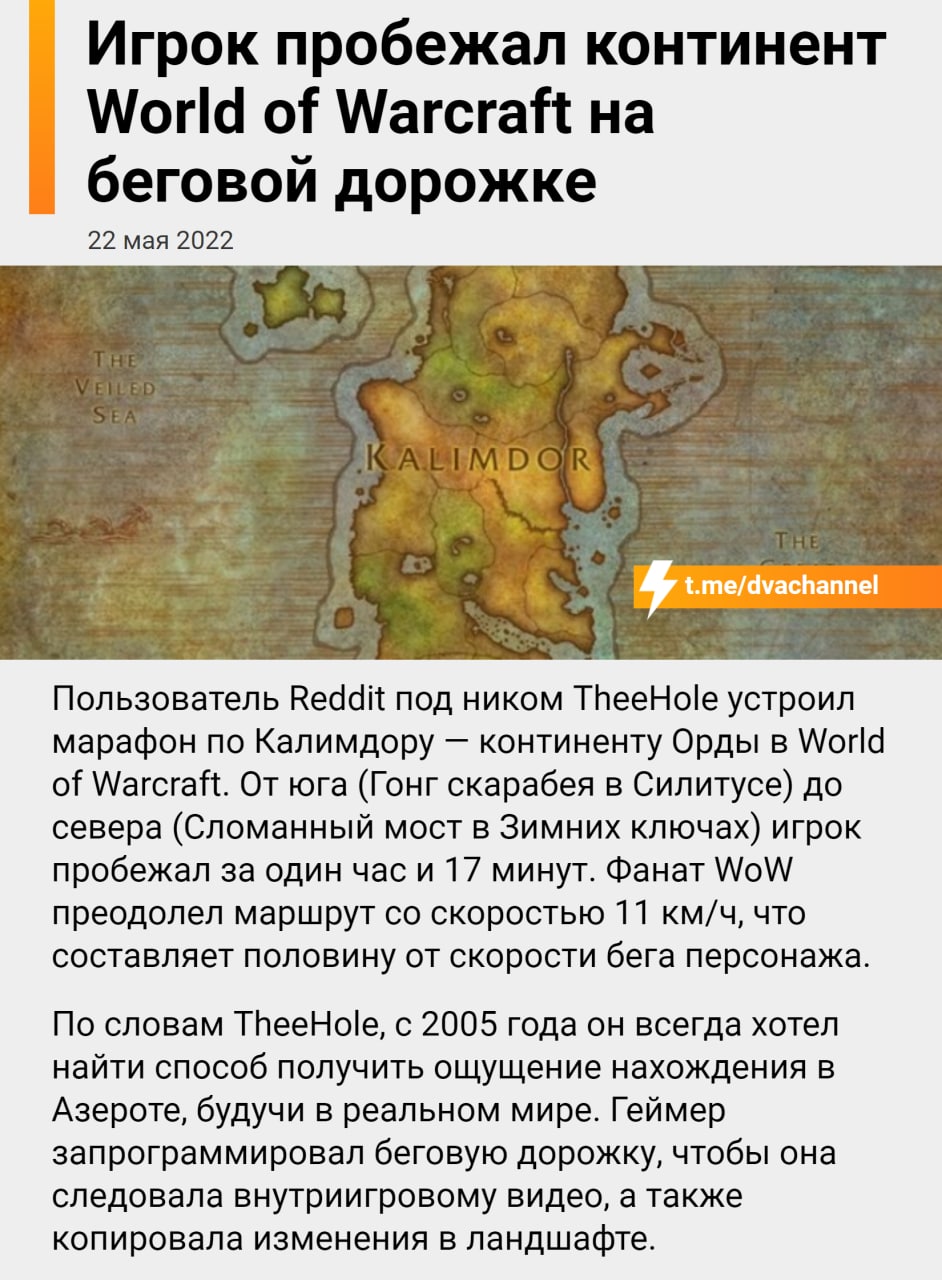 Игрок пробежал континент World of Warcraft на беговой дорожке