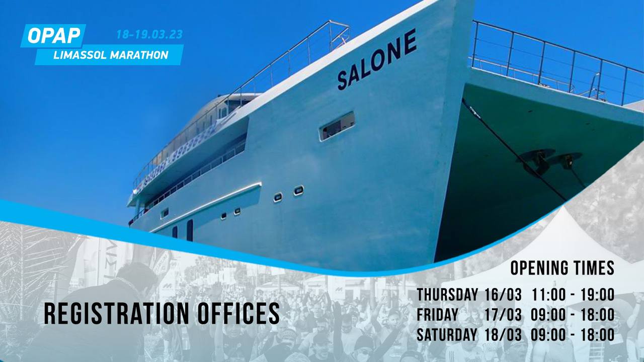 That's right, you can receive your Bib Number from our Registration Offices on the "Salone" catamaran at the Limassol Old Port, from Thursday, March 16 to Saturday, March 18.