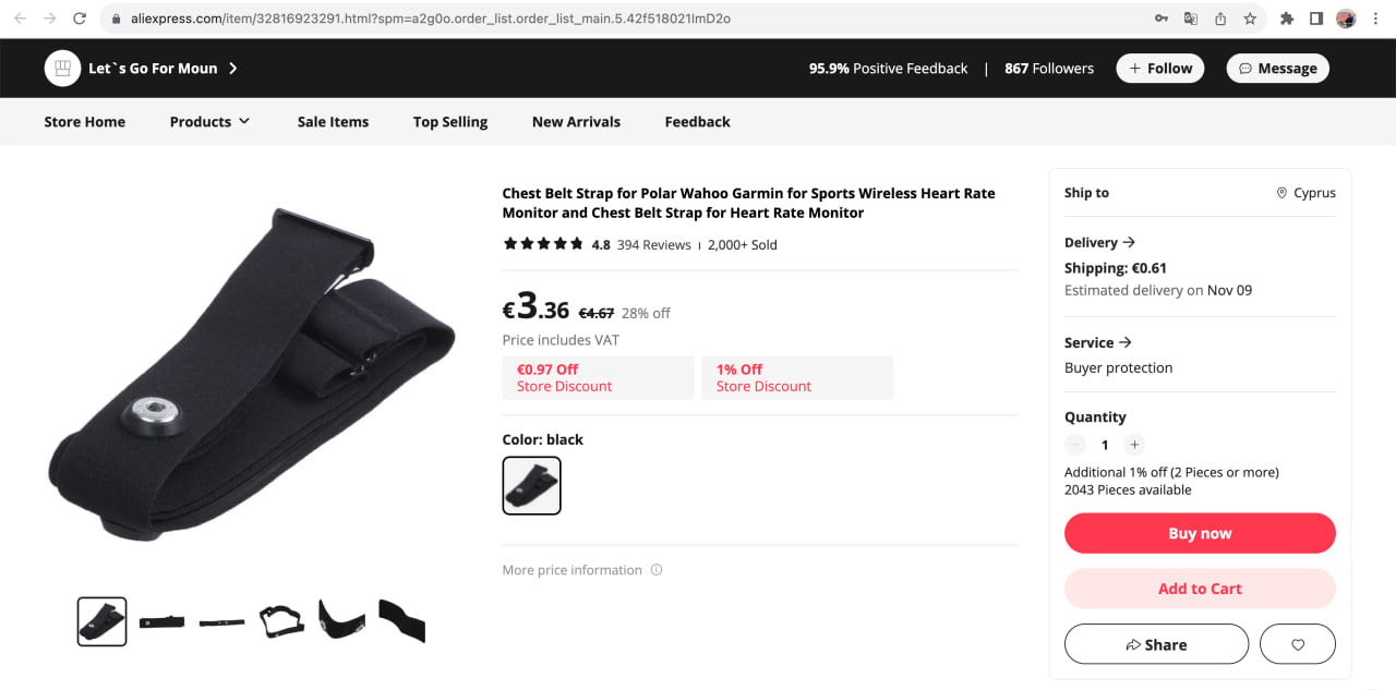 Последний раз заказывал пару штук здесь. С момента заказа и до момента как мне положили их в почтовый кипрский ящик прошло 30 дней. Закажите себе пачку ремешков и не бегайте больше в потных вонючих пульсометрах. Самим будет приятней тренироваться
