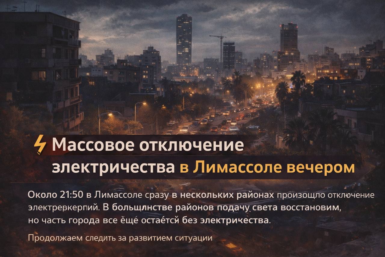 ⚡ Массовое отключение электричества в Лимассоле вечером