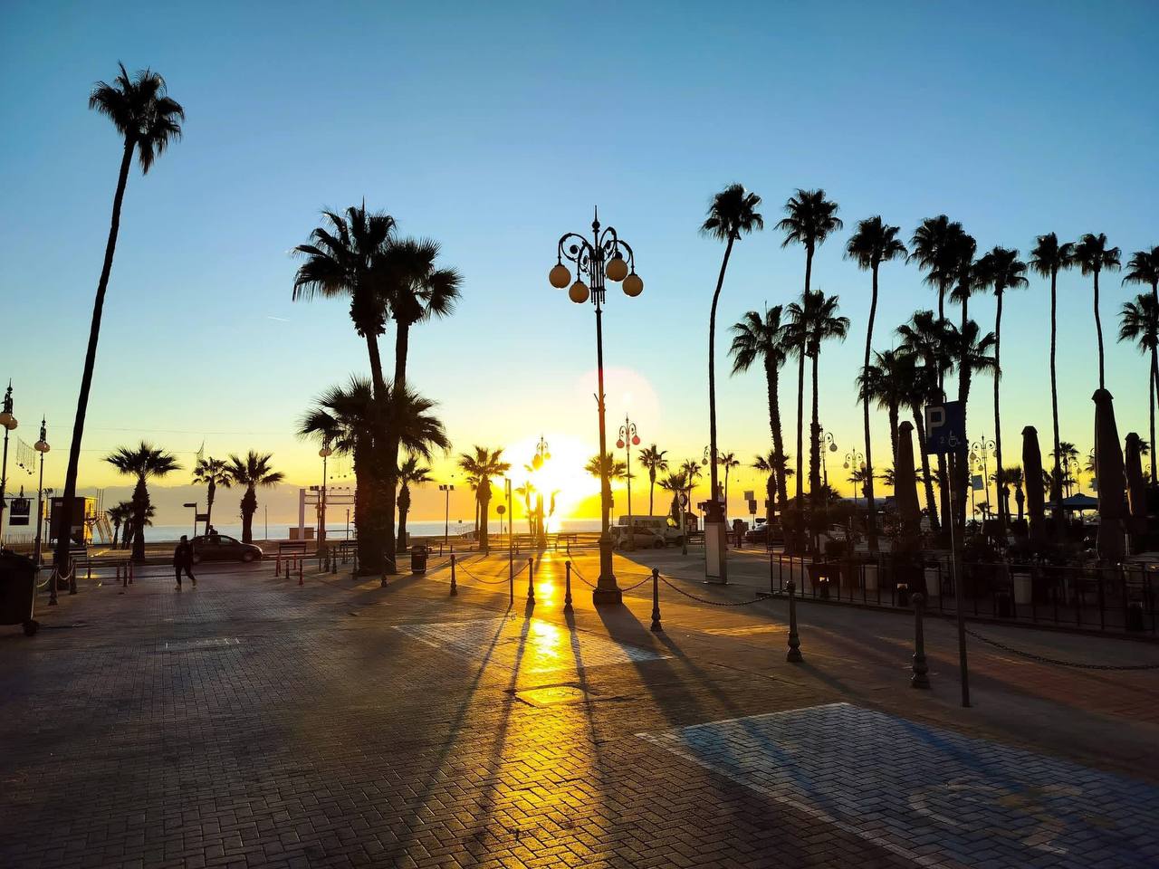 Новый день в Ларнаке начался с мягкого рассвета над морем, а вечером город проводит солнце тёплым закатом у побережья.