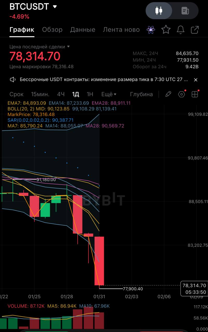 Биткоин резко обрушился до $78 000 — это самое сильное падение с весны 2025 года.