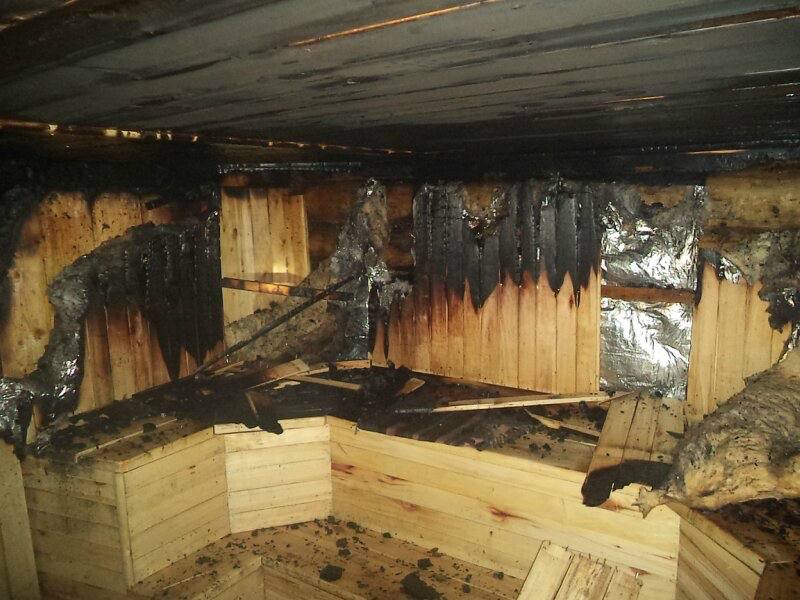 От огня помещение сауны получили значительные повреждения, но, к счастью, пожар, который был вовремя взят под контроль, не распространился на остальную часть дома.