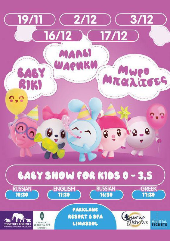 В отеле Parklane у нас состоится премьера спектакля для малышей «Малышарики»