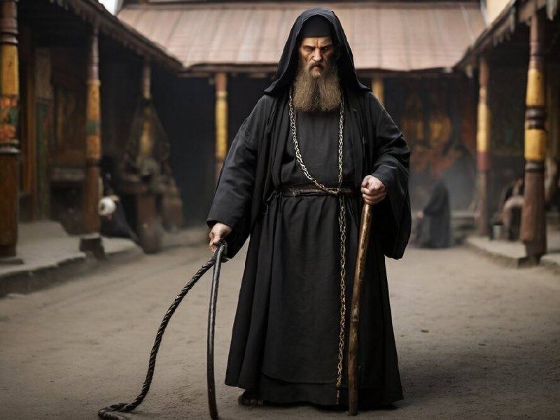 В конце видео женщина уходит из монастыря и при этом кричит монаху, что «он не в себе».