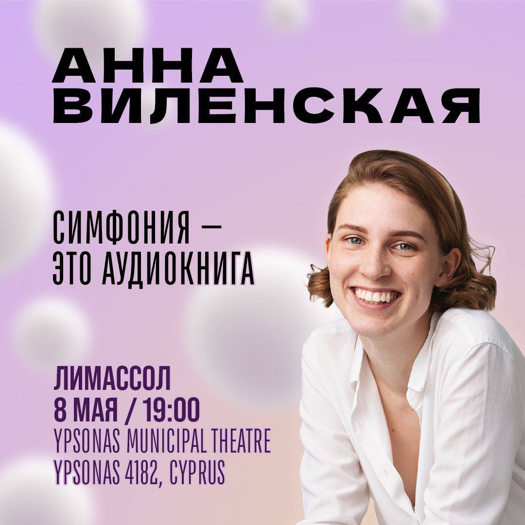 8 мая в Лимассол приедет Анна Виленская - музыковед, исследователь современной музыки. В своих лекциях она меняет подход рассказа о музыке в сторону визуализации, простоты, эмоциональности и практической пользы для слушателя.