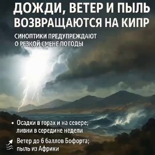 🌧Дожди, ветер и пыль возвращаются на Кипр: синоптики предупреждают о резкой смене погоды