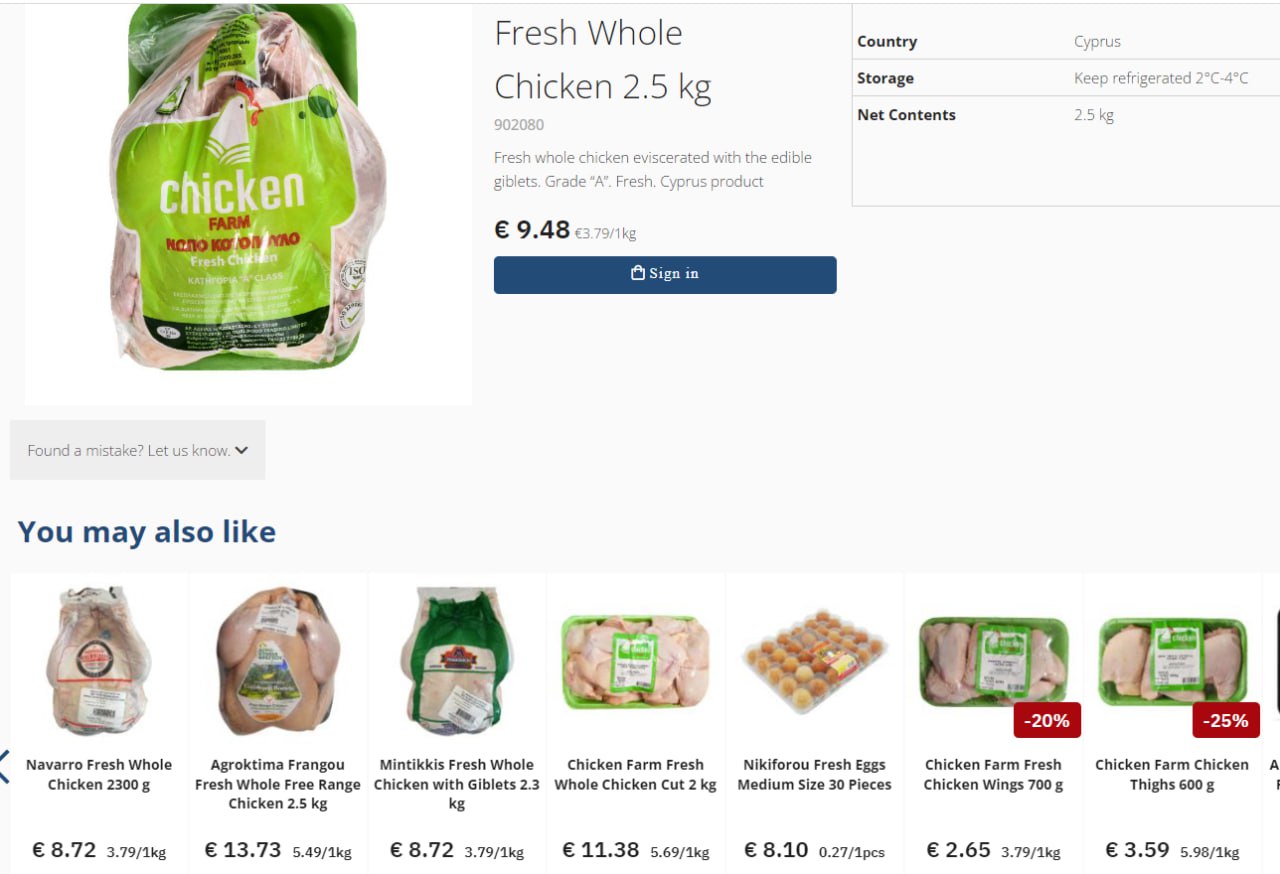 Для примера: 1 кг куры 7€ стоит. Говядина 1 кг от 8 евро. Вот и считайте
