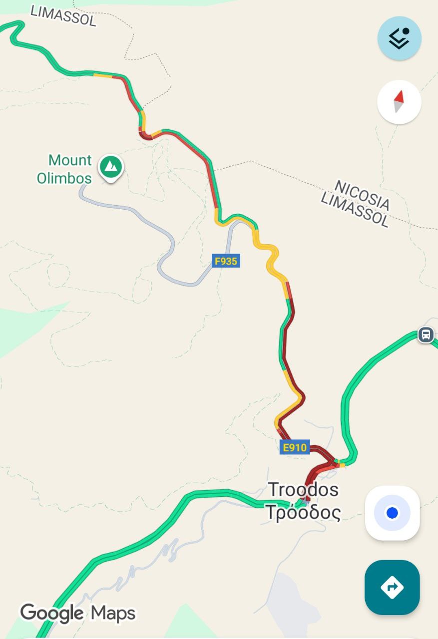 В ней я тоже постоял, около 18 выехали обратно :) Там на дороге машина возле деревни Троодос в сугроб "ушла" и перегородила поперек полосу дороги.