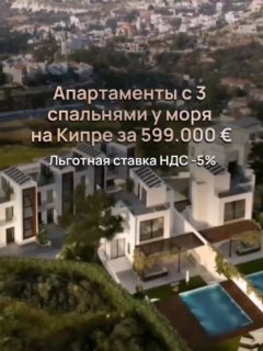 1️⃣ Апартаменты с 3 спальнями у моря на Кипре за 599.000 €