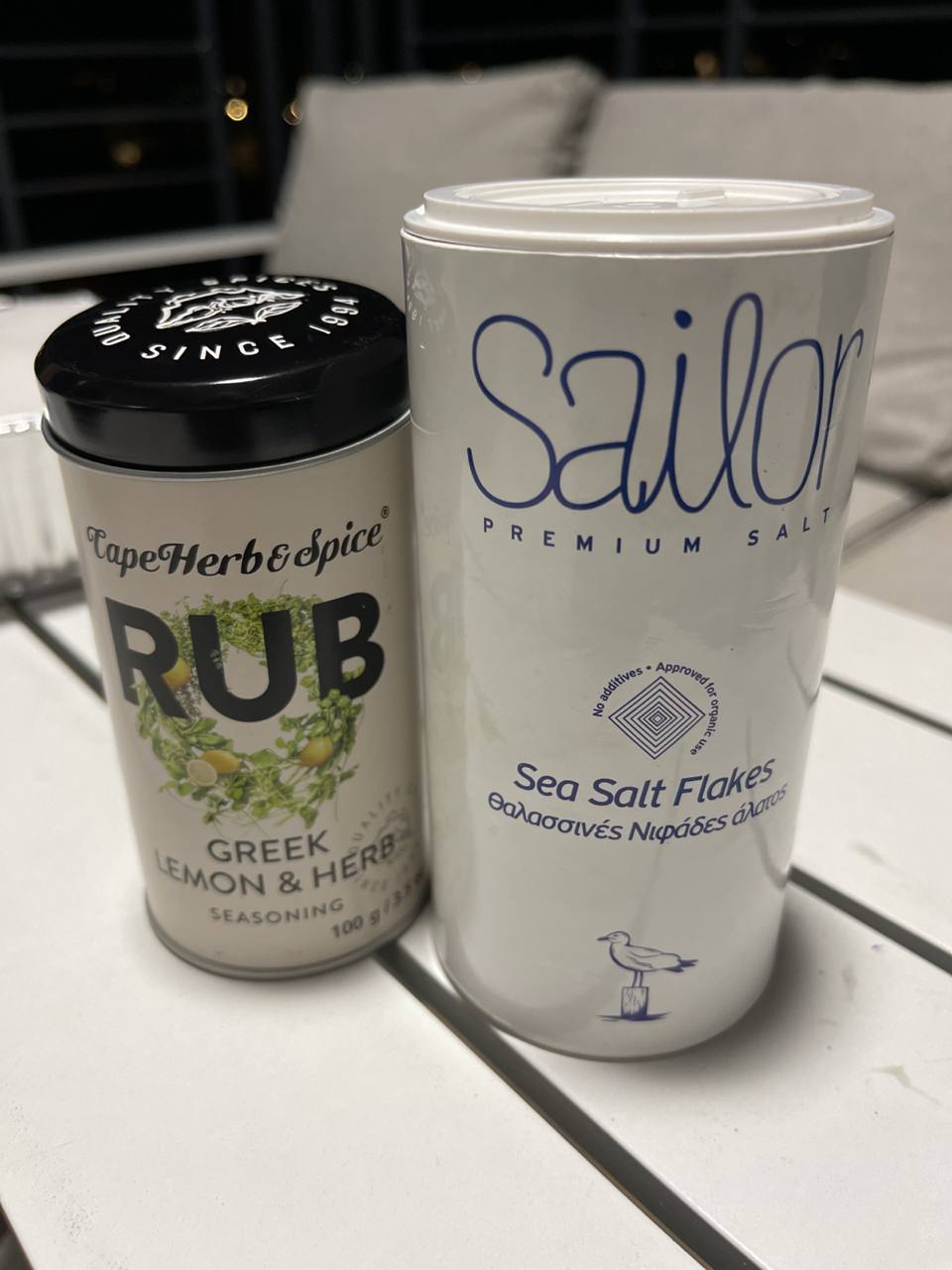 Да, и еще соль хлопьями и подборка трав «греческих» с лимоном