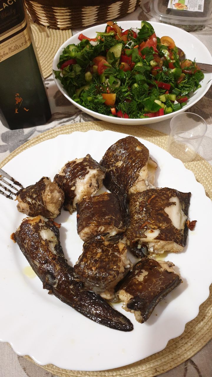 Приготовленная мурена,деликатес. Мясо белое и нежное.