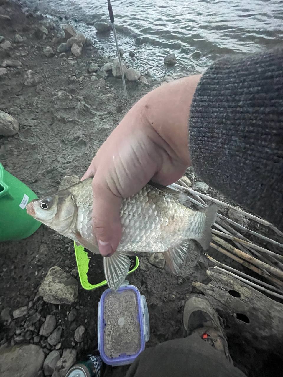 Гермассойа, приехал к 16. Фидер, опарыш. Сначала плотва, потом подтянулись караси. А потом пришел сазан, небольшой, ну максимум 1-1,5.