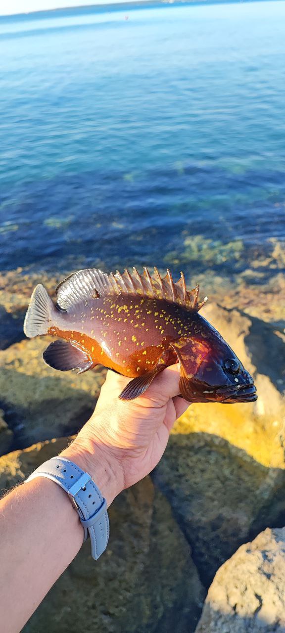 Итог утра на ледисмайл. Полурылы пока держится далеко. Заброс на 70-80 метров. Группер хватанул в 3х метрах. Как всегда из камней вылетел.