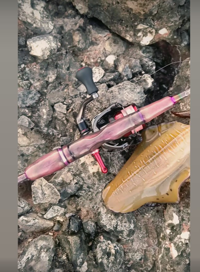 Ну и передняя часть после ручки, у шиман намного меньше, а тут длинющая для того чтобы вместить "custom build by cuprus custom rods" :)