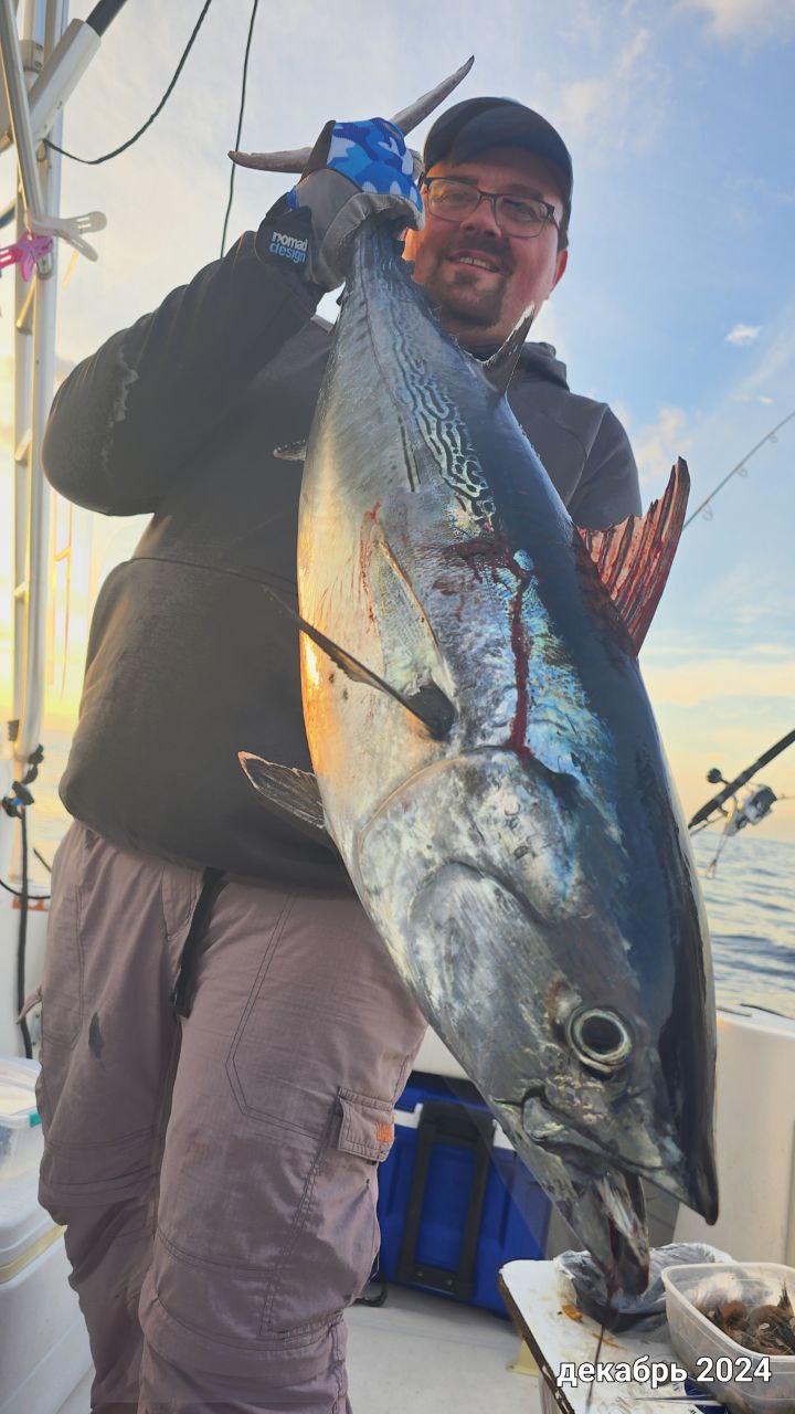 Вот такой прилов сейчас присутствует. Таких ставридосов можно наловить вечером в количестве. Глубина 50-60 метров. Пилькер 60 грамм, сверху белый виброхвостик 5 см. Тупо стучать по дну. Поклёвки из серии отдайте палку.