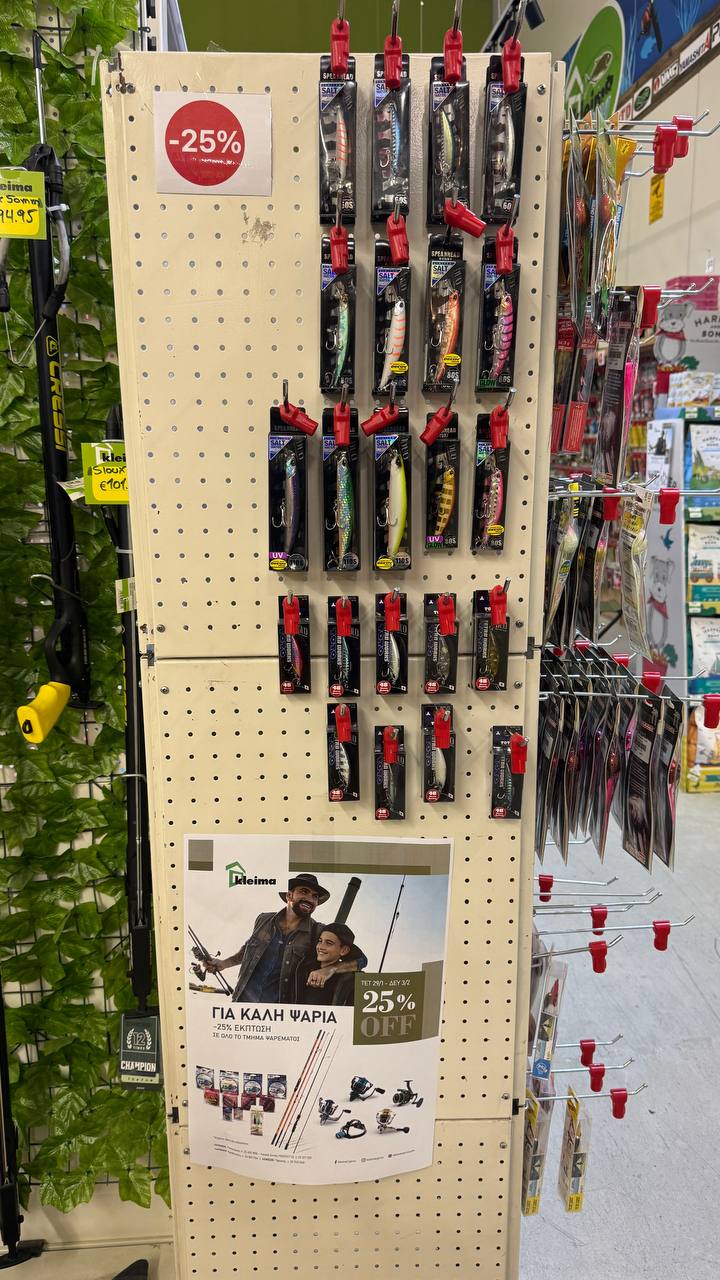 В Kleima -25 на весь рыбаловный отдел а он там достаточно большой. Дуо/ дтд, риоби катухи, куча удочек недорогих, все есть