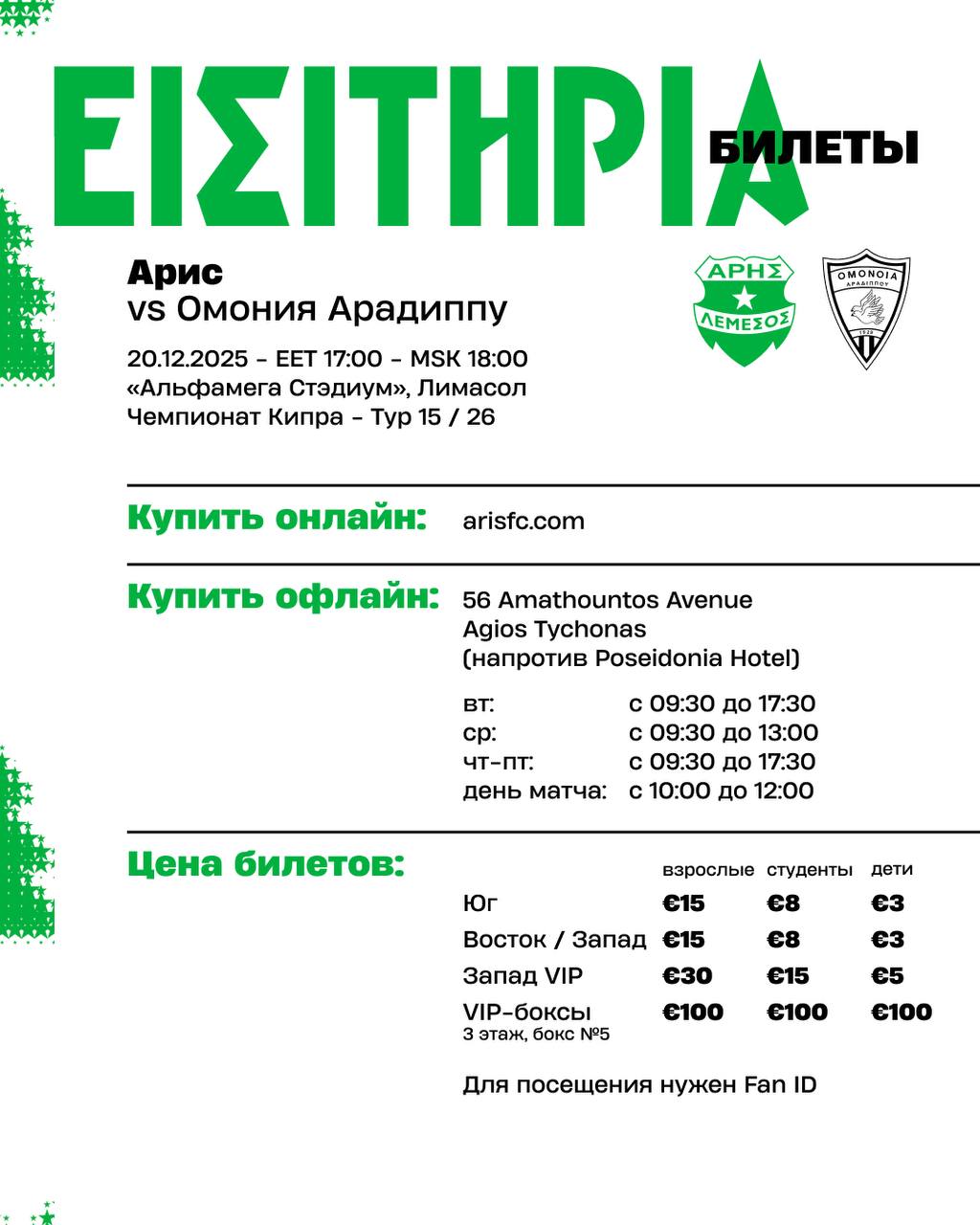 20 декабря на «Альфамеге» встречаются «Арис» и «Омония» Арадиппу, а перед матчем запланированы рождественские гуляния.