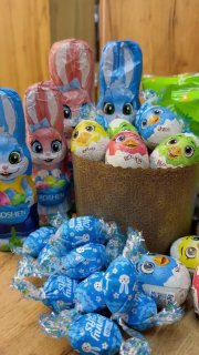 Мы привезли целое семейство Пасхальных кроликов, цыплят и конфет от Roshen