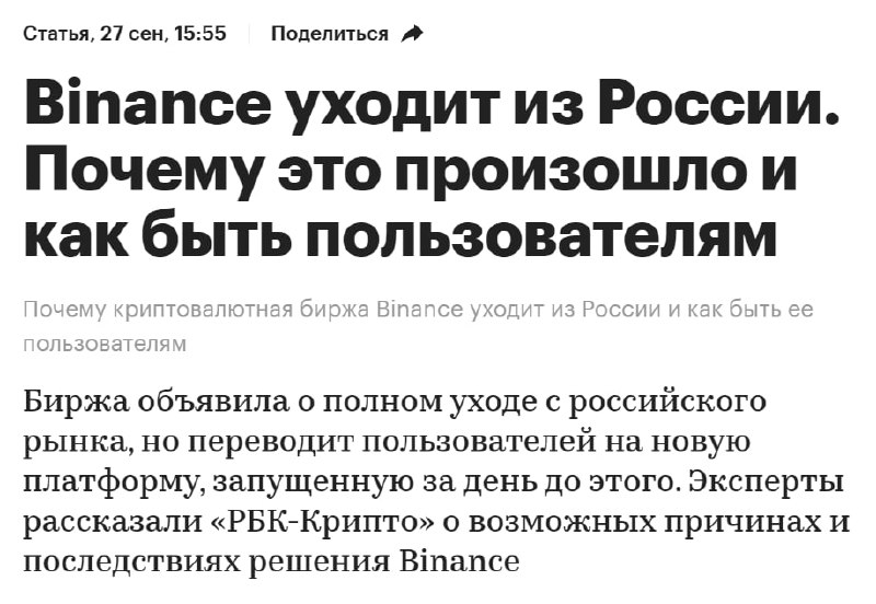 Бинанс тащемта уже закрыл все выводы в рублях и рублевые пары и продал свое RU ООО (или что там у них было) (смените уже методичку, т-варищ криптоскамер)