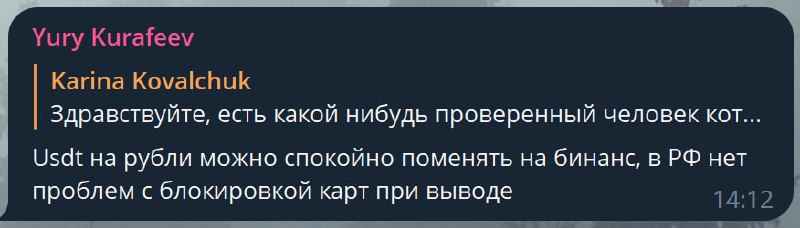 Usdt на рубли можно спокойно поменять на бинанс, в РФ нет проблем с блокировкой карт при выводе