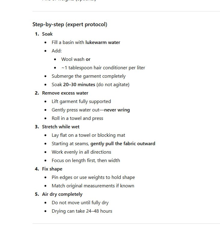 @annajaskoЕсли нужен перевод, дайте знать. Попробуйте. Если не было горячей температуры, то возможно еще что то вернуть. После высокой температуры там как фиксация волокна и уже ничего не поможет. Еще также, учтите, что если волокно очень тонкое, то мало что по % соотношению можно восстановить.