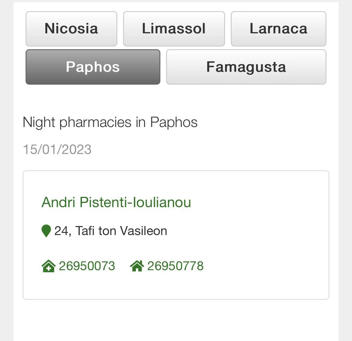 Здравствуйте, подскажите, может кто знает какие аптеки работают в воскресенье в пафосе
