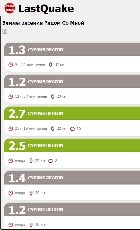Тут качает ежедневно. Если долго будете жить на Кипре, то толчки менее 5 баллов замечать просто не будете.