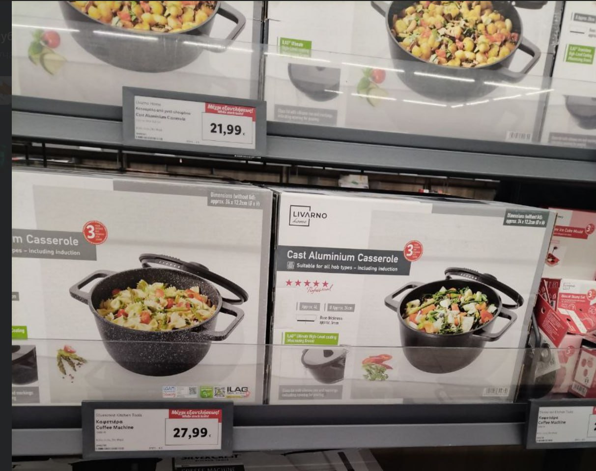 Можно в суперхоме, но будьте готовы, что за него вы заплатите очень много денег. Мы искали ровную чугунную типа тарелку для гриля, чтобы на ней жарить овощи/мясо, ценника на стеллаже не было, мы уточнили на кассе — стоимость 100€