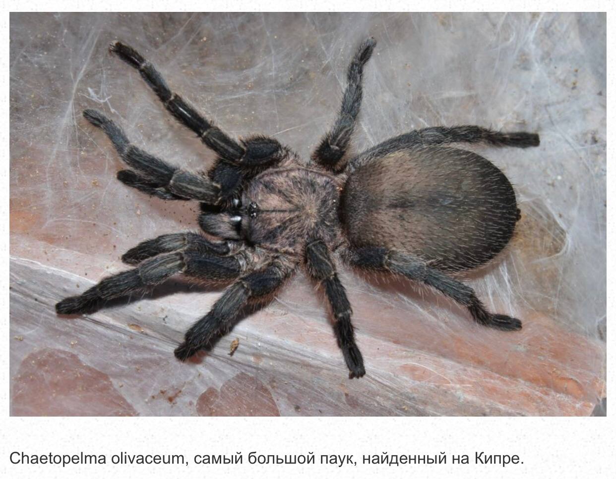 Chaetopelma olivaceum Укус этого паука не опасен для жизни человека, но может быть болезненным и вызывать жжение. Нежелательно также допускать контакт пауков с домашними животными. Питается этот паук насекомыми и тараканами и выполняет важную экологическую функцию.