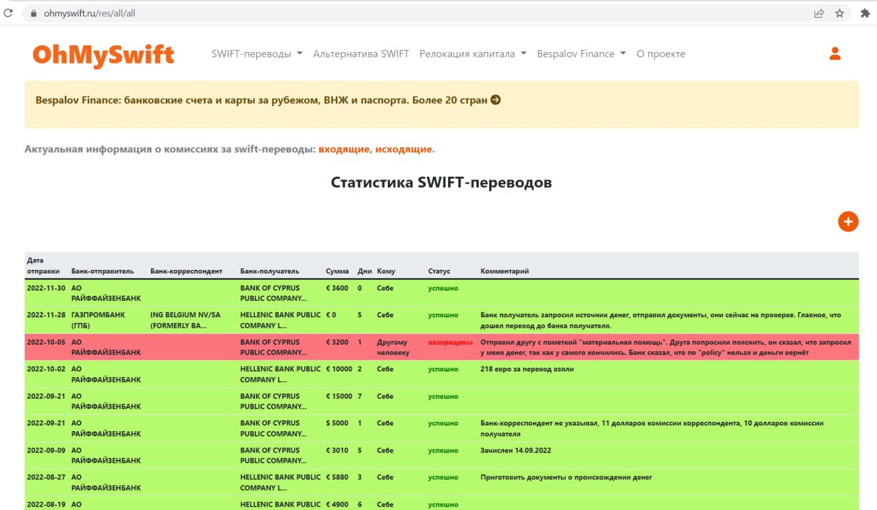 Подскажите, кто делал SWIFT? Смотрю на OhMySwift статистику - судя по всему, из Райфайзена лучше доходят.