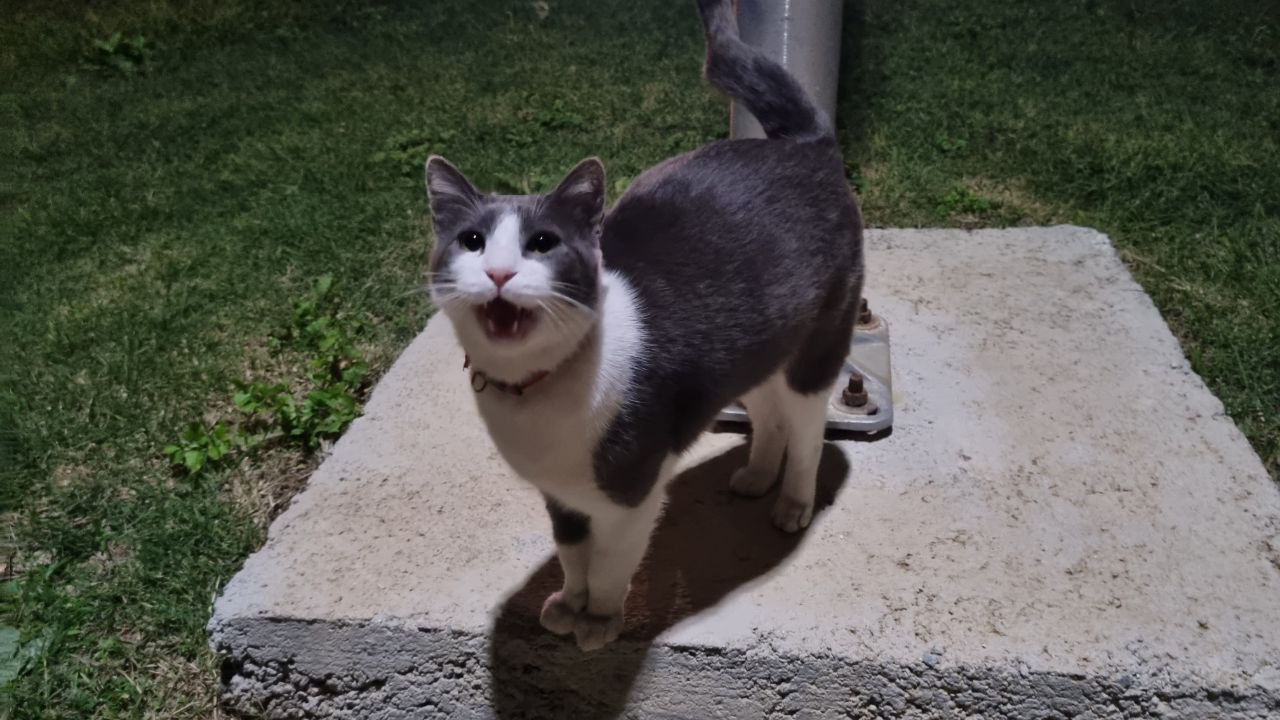 Никто кошку не терял? Ошейник красный с серебристой светоотражающей полосой. Выглядит домашней и потерявшейся.
