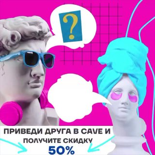 Не забудь захватить с собой друга и вы вместе получите скидку 50% на 1 игру в Мафию по промокоду CAVE50.