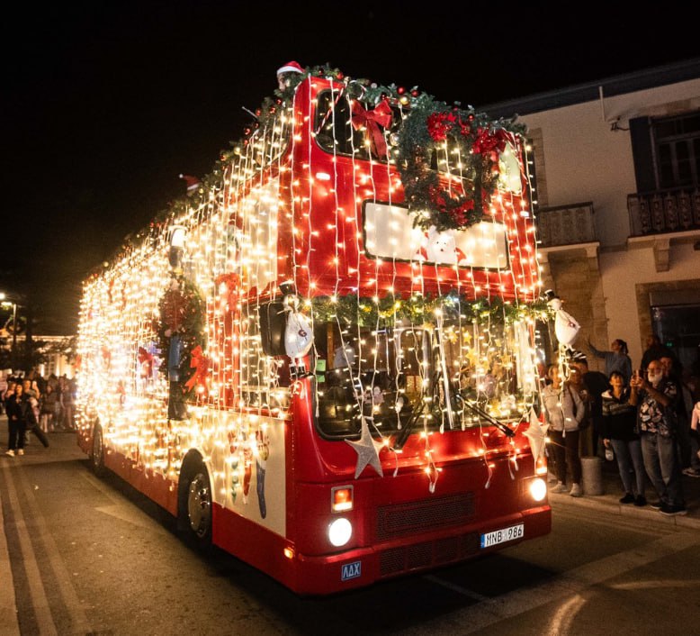 В Пафосе начинает курсировать праздничный автобус, который бесплатно перевозит жителей и гостей города, наполняя улицы рождественской атмосферой, музыкой, улыбками и праздничной магией ✨
