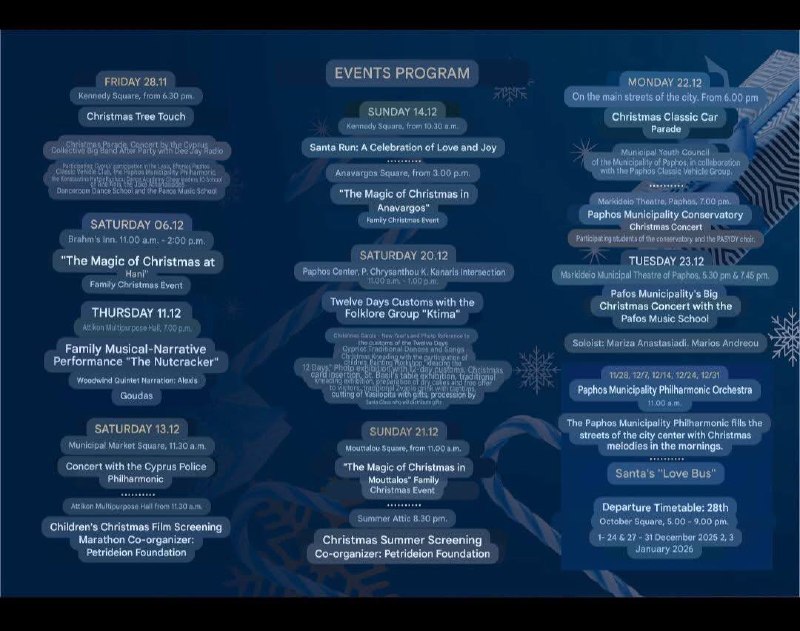 🎄 Расписание праздничных мероприятий в Пафосе